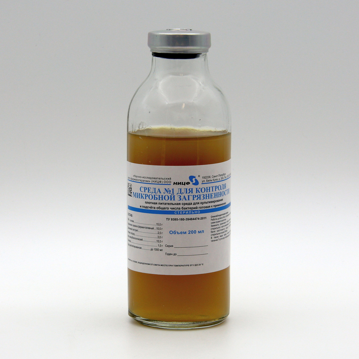 Среда для контроля микробной загрязненности №1. Плотная питательная среда для выращивания аэробных бактерий готовая к применению, фл. 200 мл.