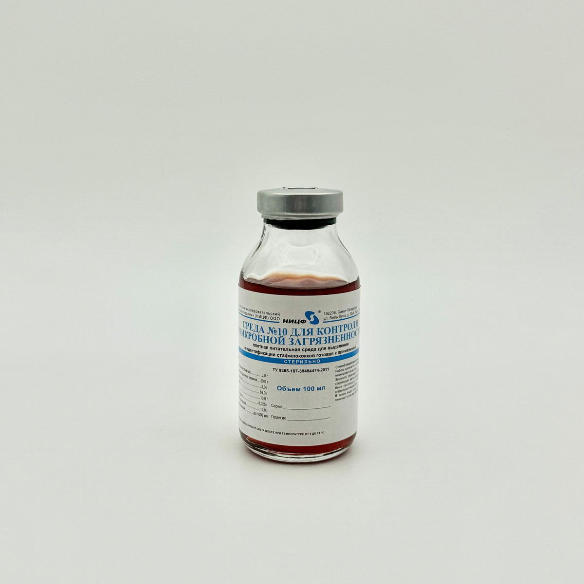 Среда для определения микробной загрязненности № 10. Питательная среда для выделения идентификации Staphyloccocus aureus сухая. Маннит-солевой агар готовая к применению, фл. 200 мл, фл. 100 мл.