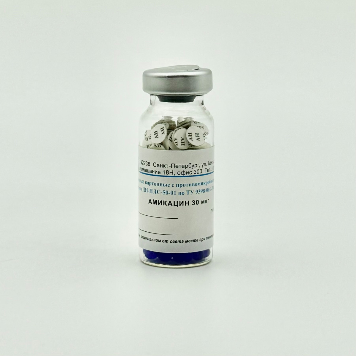 Диски индикаторные картонные с противомикробными лекарственными средствами ДИ-ПЛС-50-01 с амикацином 30 мкг № 100