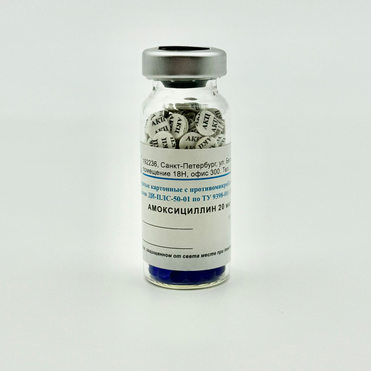 Диски индикаторные картонные с противомикробными лекарственными средствами ДИ-ПЛС-50-01 с амоксициллином 20 мкг № 100