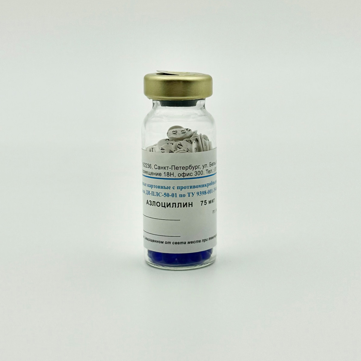 Диски индикаторные картонные с противомикробными лекарственными средствами ДИ-ПЛС-50-01 с азлоциллином 75 мкг № 100