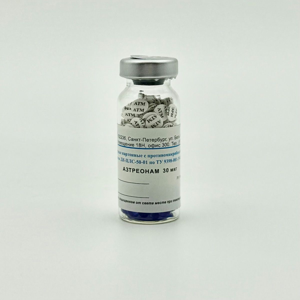 Диски индикаторные картонные с противомикробными лекарственными средствами ДИ-ПЛС-50-01 с азтреонамом 30 мкг № 100