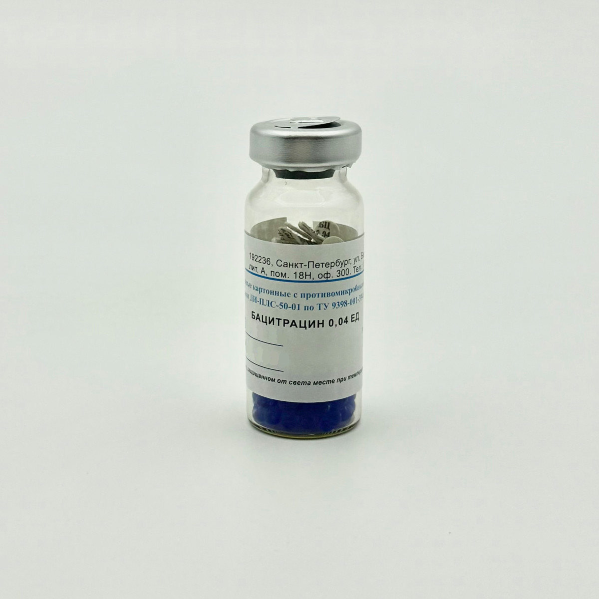 Диски индикаторные картонные с противомикробными лекарственными средствами ДИ-ПЛС-50-01с бацитрацином 0,04 ЕД № 50.