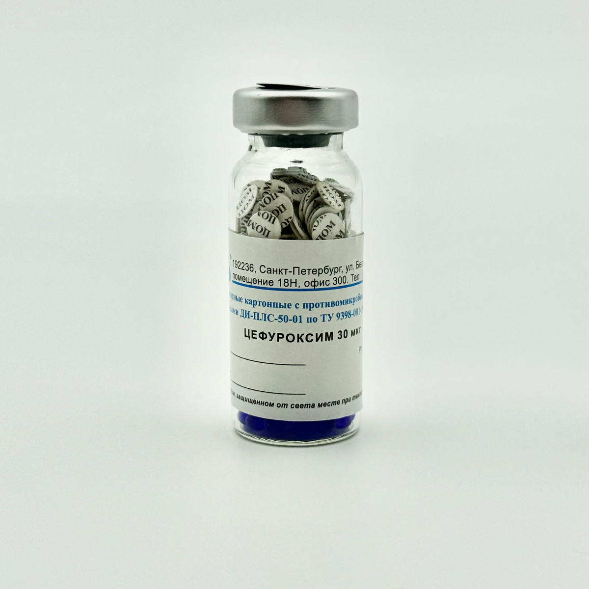 Диски индикаторные картонные с противомикробными лекарственными средствами ДИ-ПЛС-50-01 с цефуроксимом 30 мкг № 100