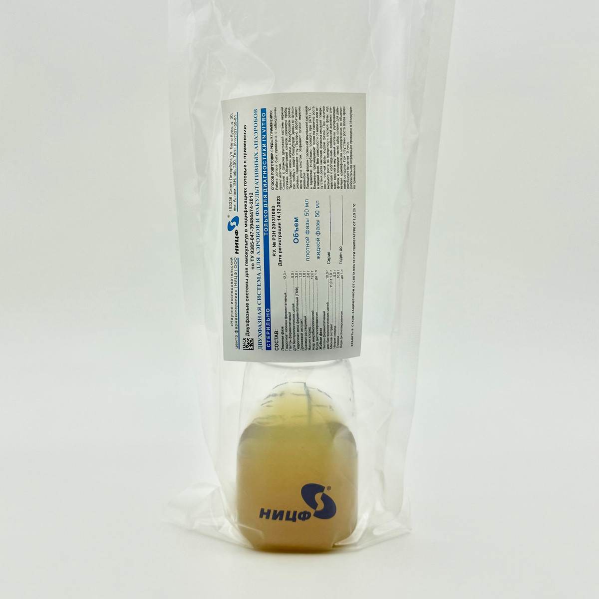 Двухфазная система для аэробных и факультативно анаэробных гемокультур предназначена для транспортирования, выделения и культивирования микроорганизмов различных систематических групп.