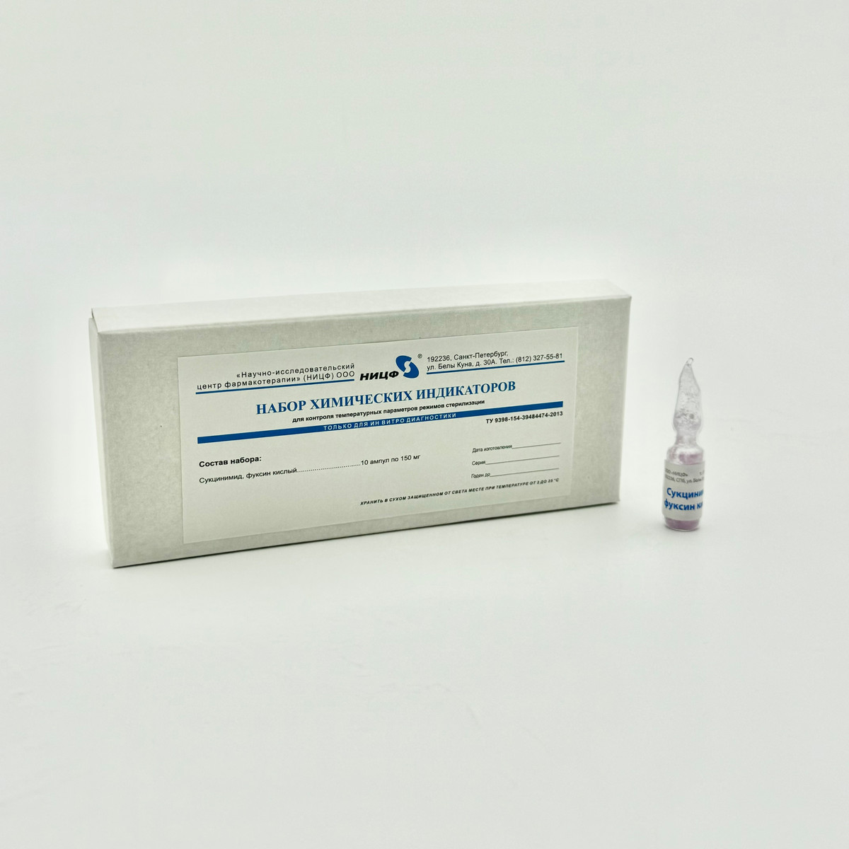Набор химических индикаторов для контроля температурных параметров режимов стерилизации при 126 гр. Цельсия с сукцинимидом,10 амп.