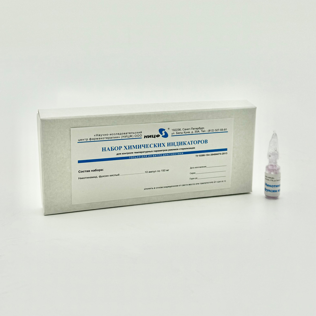 Набор химических индикаторов для контроля температурных параметров режимов стерилизации при 132 гр. Цельсия с никотинамидом,10 амп.