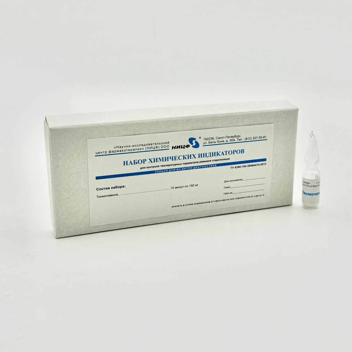 Набор химических индикаторов для контроля температурных параметров режимов стерилизации при 180 градусов Цельсия с тиомочевиной,10 амп.