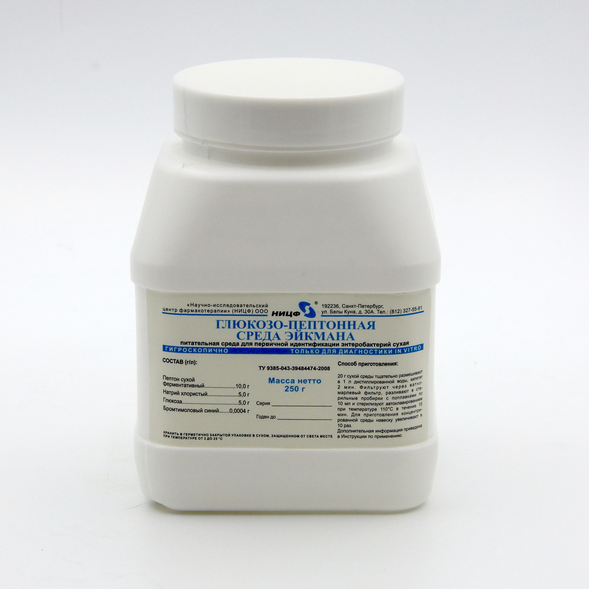 Среда Эйкмана с глюкозой (глюкозо-пептонная среда) сухая. 0,25 кг.