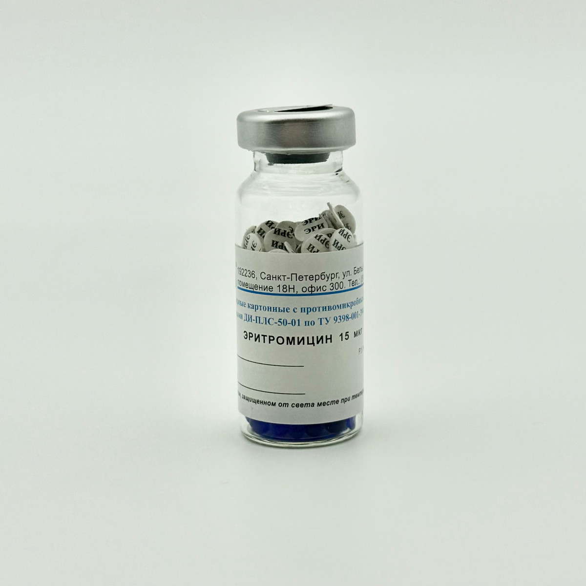 Диски индикаторные картонные с противомикробными лекарственными средствами ДИ-ПЛС-50-01 с эритромицином 15 мкг № 100