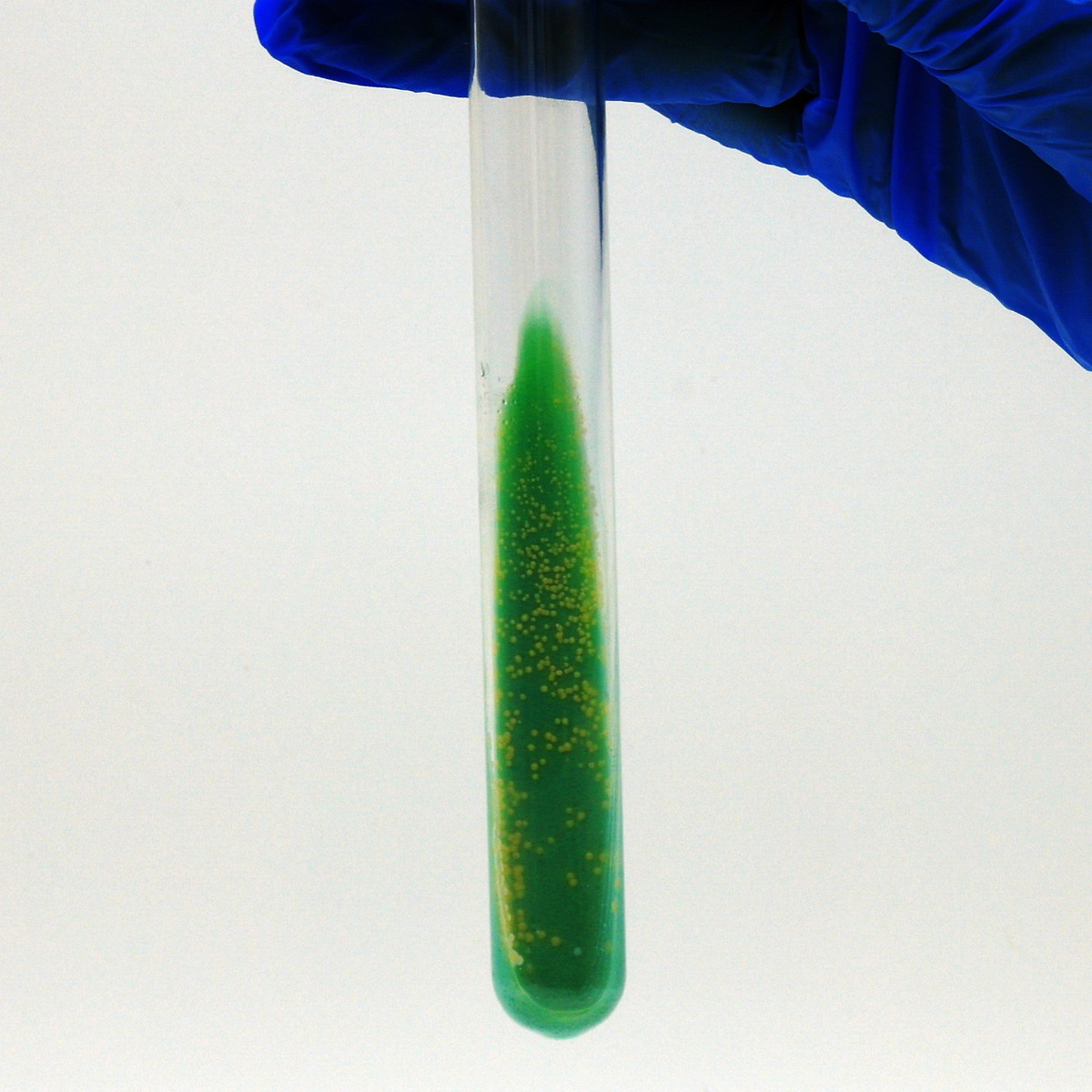 Малахитовый зеленый предотвращает рост представителей сопутствующей микрофлоры, в первую очередь той флоры, которая дает рост много раньше, чем микобактерии. Малахитовый зеленый является не только ингибитором роста, но и рН-индикатором. Появление синих зон указывает на повышение кислотности за счет роста грамположительных контаминантов (например, Staphylococcus spp.). Желтые зоны выявляют контаминацию грамотрицательными бактериями. Протеолитические микроорганизмы формируют локальные зоны или полную деструкцию среды.