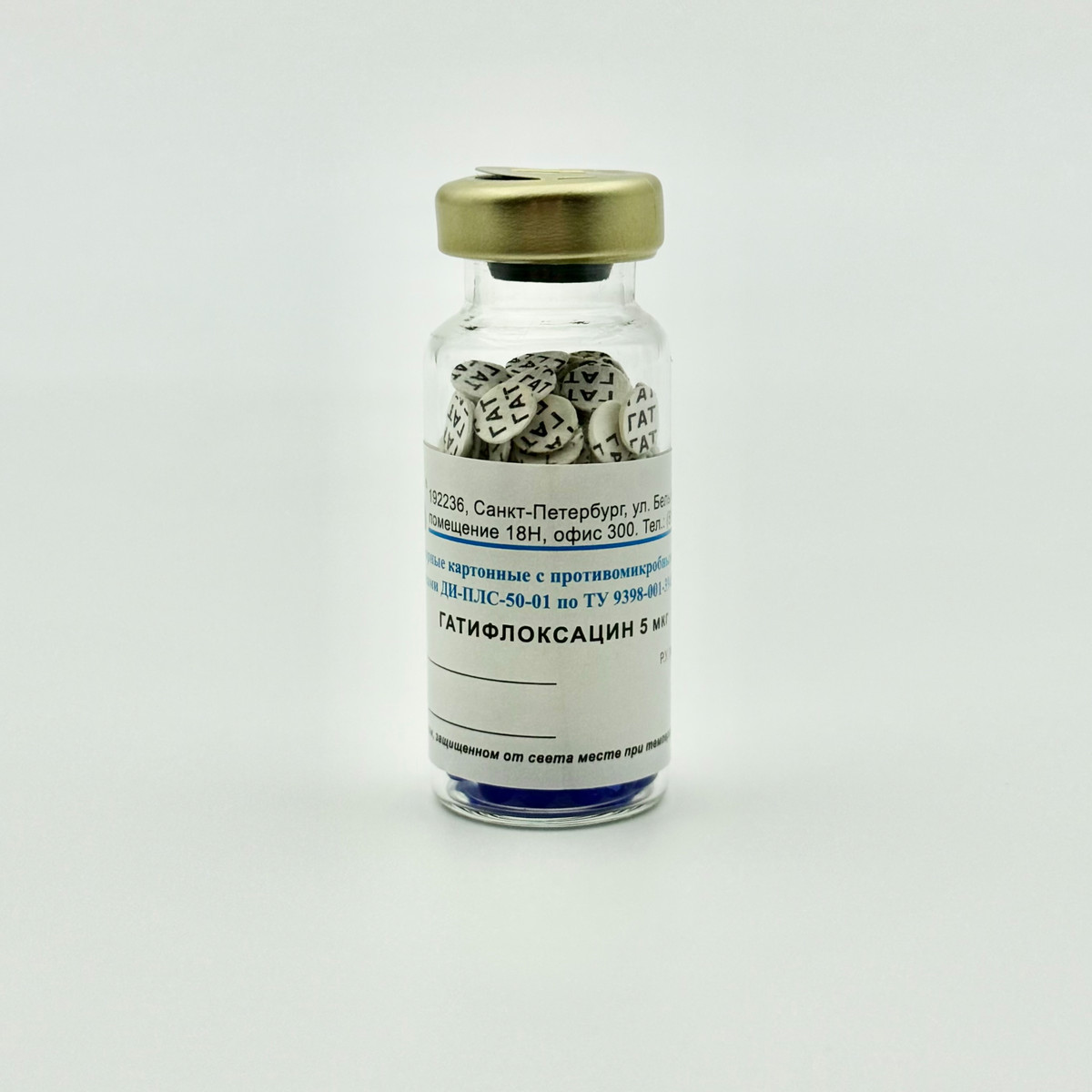 Диски индикаторные картонные с противомикробными лекарственными средствами ДИ-ПЛС-50-01 с гатифлоксацином 5 мкг № 100