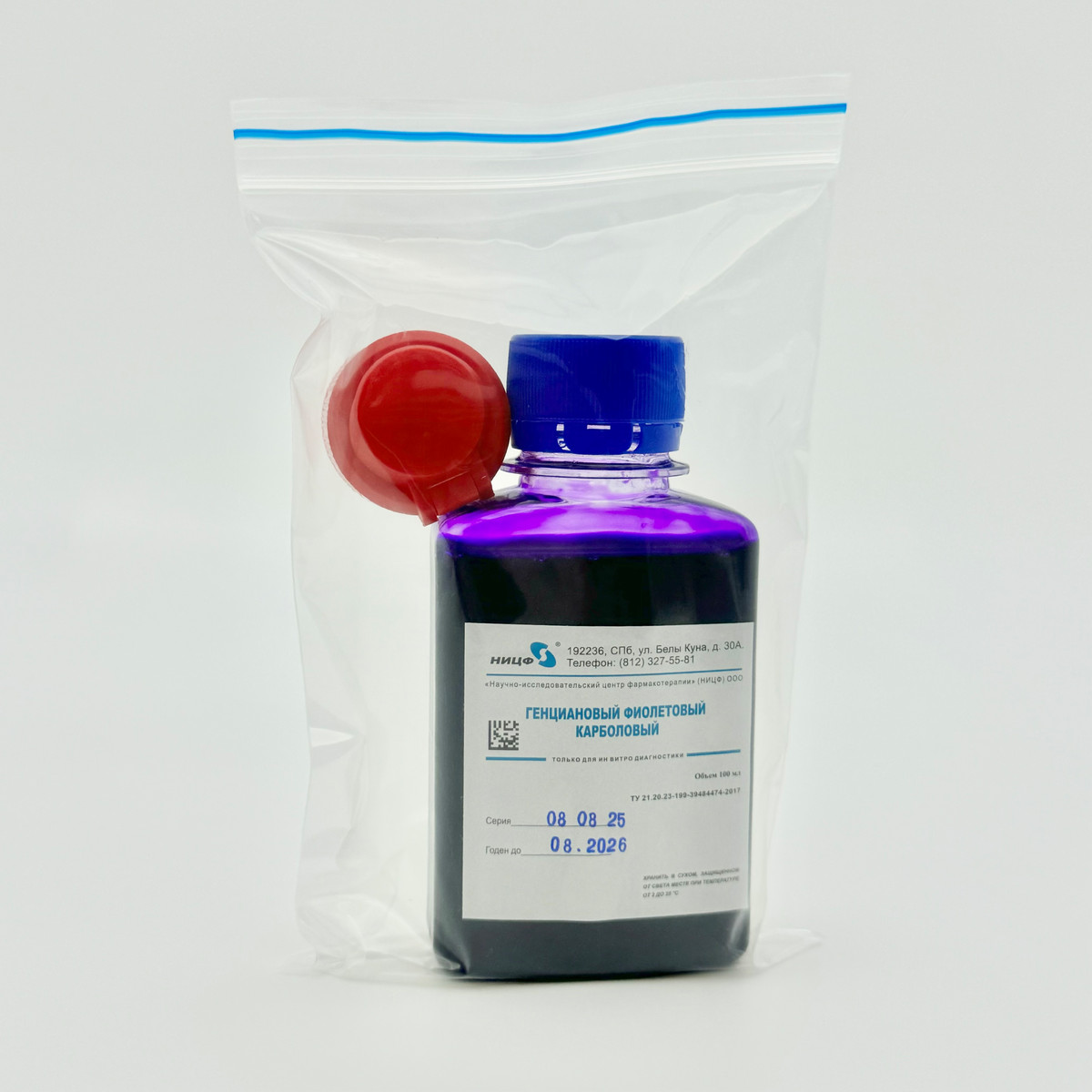 Раствор предназначен для использования в качестве основного красителя в составе реагентов для окраски грамположительных и грамотрицательных микроорганизмов по методу Грама.