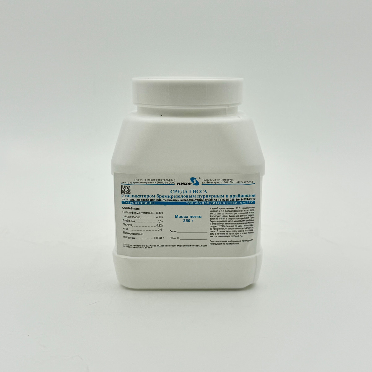 Питательная среда для идентификации энетеробактерий сухая. Среда Гисса с индикатором бромкрезоловым пурпурным и арабинозой. 0,25 кг.