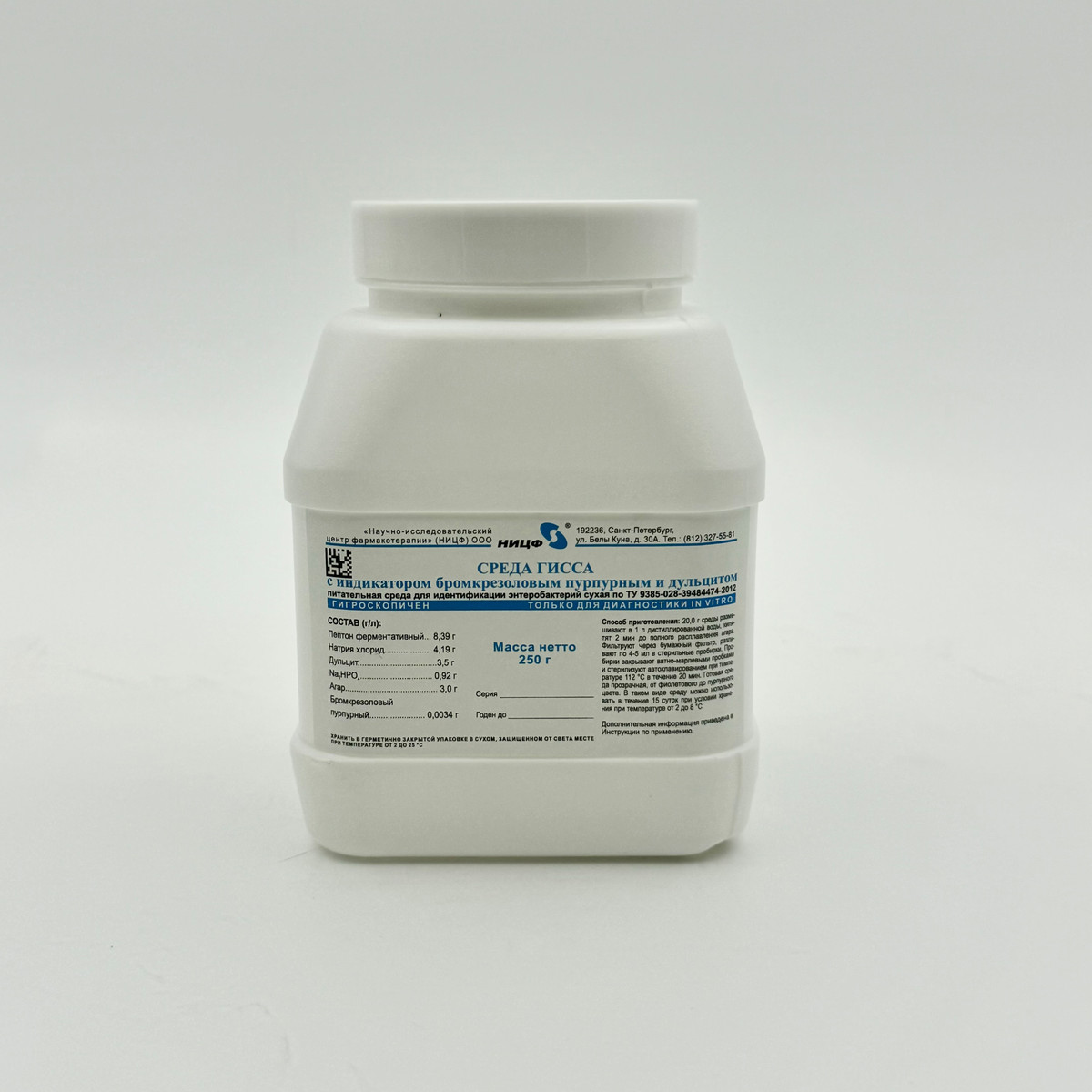 Питательная среда для идентификации энетеробактерий сухая. Среда Гисса с индикатором бромкрезоловым пурпурным и дульцитом. 0,25 кг.