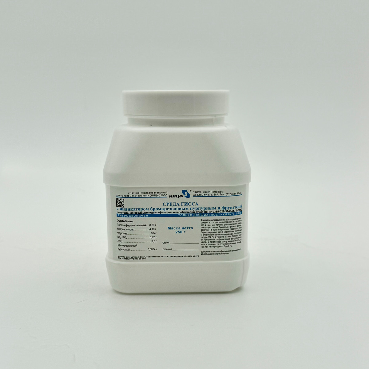 Питательная среда для идентификации энетеробактерий сухая. Среда Гисса с индикатором бромкрезоловым пурпурным и фруктозой. 0,25 кг.
