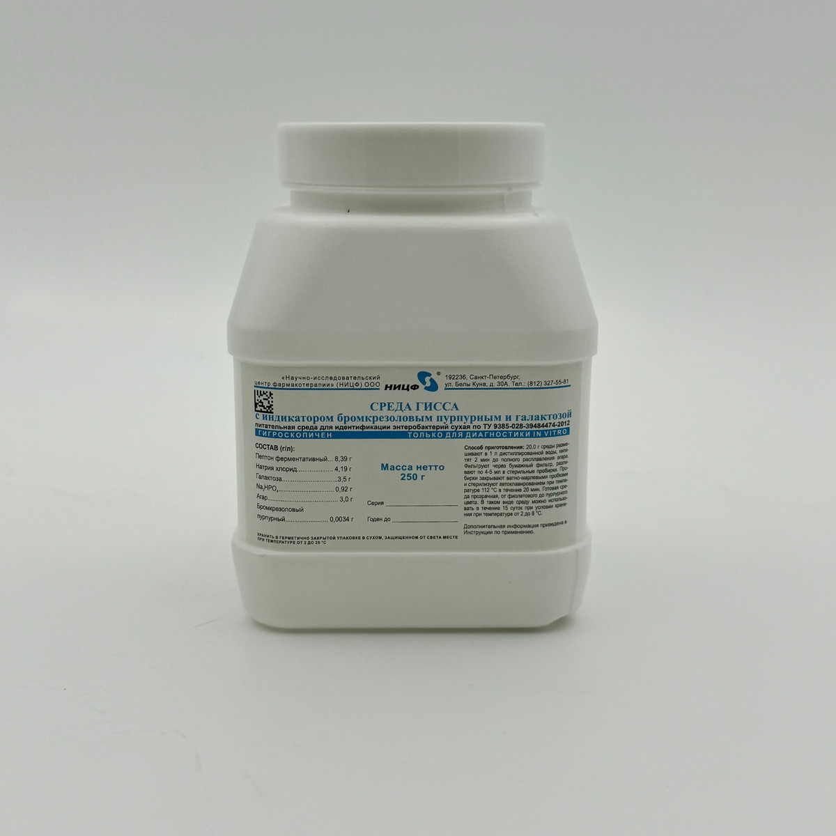 Питательная среда для идентификации энетеробактерий сухая. Среда Гисса с индикатором бромкрезоловым пурпурным и галактозой. 0,25 кг.