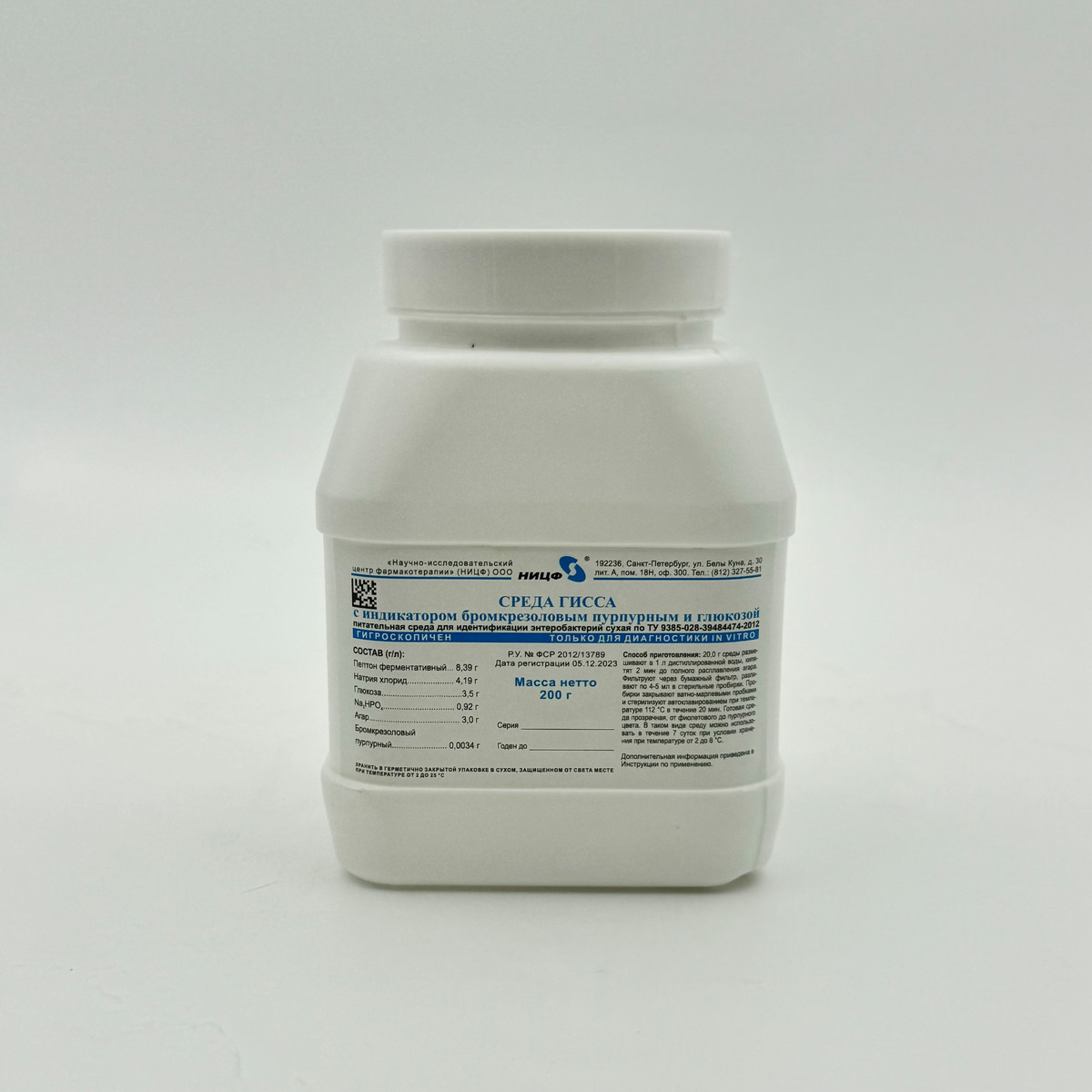 Питательная среда для идентификации энетеробактерий сухая. Среда Гисса с индикатором бромкрезоловым пурпурным и глюкозой. 0,2 кг