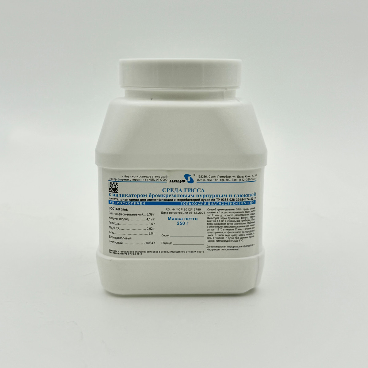 Питательная среда для идентификации энетеробактерий сухая. Среда Гисса с индикатором бромкрезоловым пурпурным и глюкозой. 0,25 кг