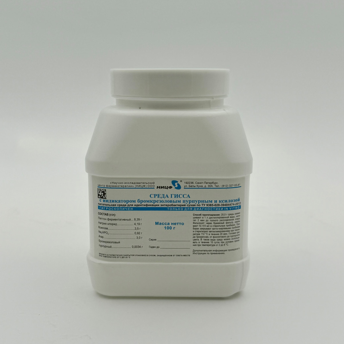 Питательная среда для идентификации энетеробактерий сухая. Среда Гисса с индикатором бромкрезоловым пурпурным и ксилозой. 0,1 кг.
