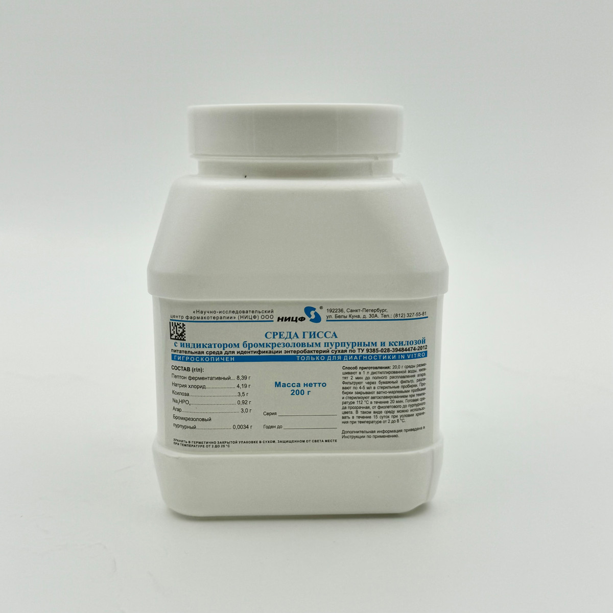 Питательная среда для идентификации энтеробактерий сухая, среда Гисса с индикатором бромкрезоловым пурпурным предназначена для идентификации культур энтеробактерий, выделенных из клинического материала и объектов окружающей среды, по способности ферментировать углеводы или многоатомные спирты.