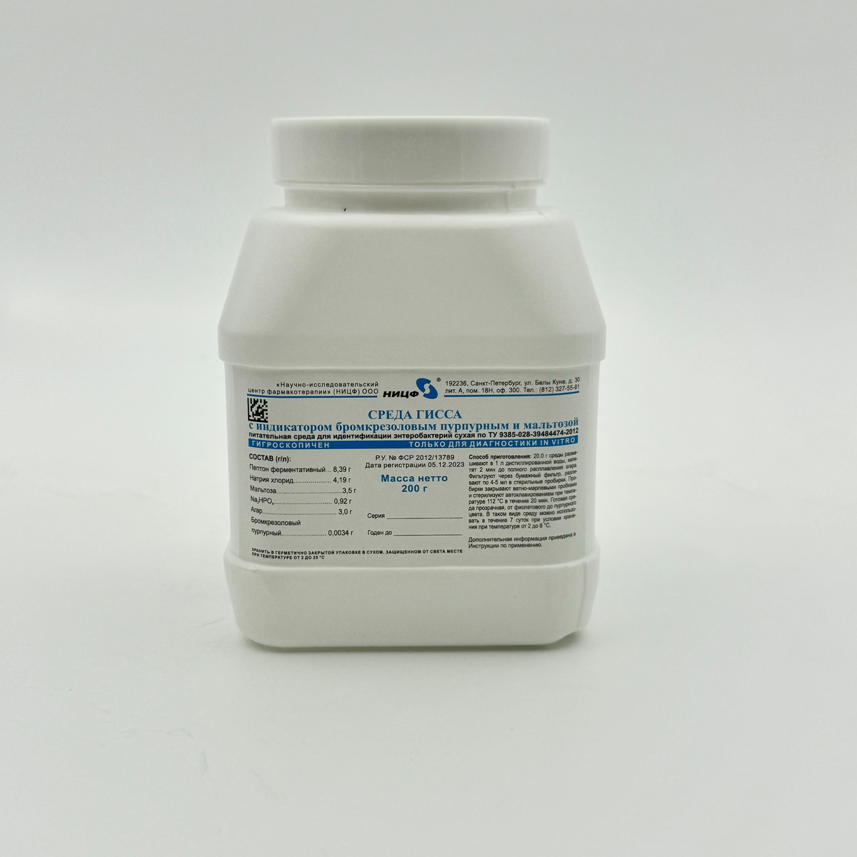 Питательная среда для идентификации энетеробактерий сухая. Среда Гисса с индикатором бромкрезоловым пурпурным и мальтозой. 0,2 кг.