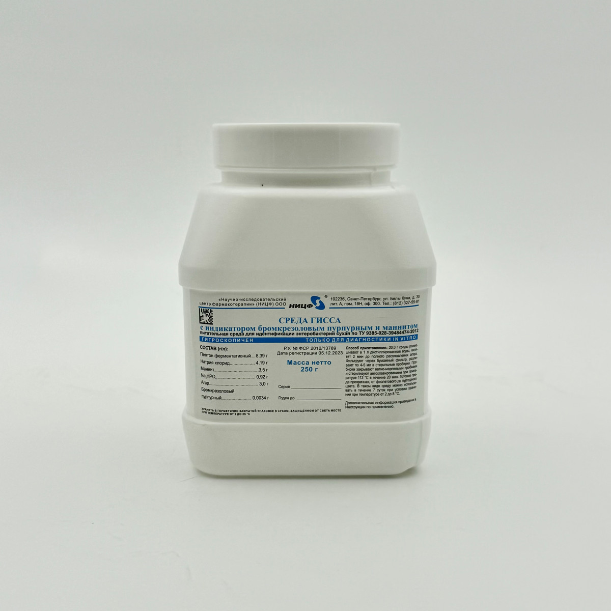 Питательная среда для идентификации энетеробактерий сухая. Среда Гисса с индикатором бромкрезоловым пурпурным и маннитом. 0,25 кг.