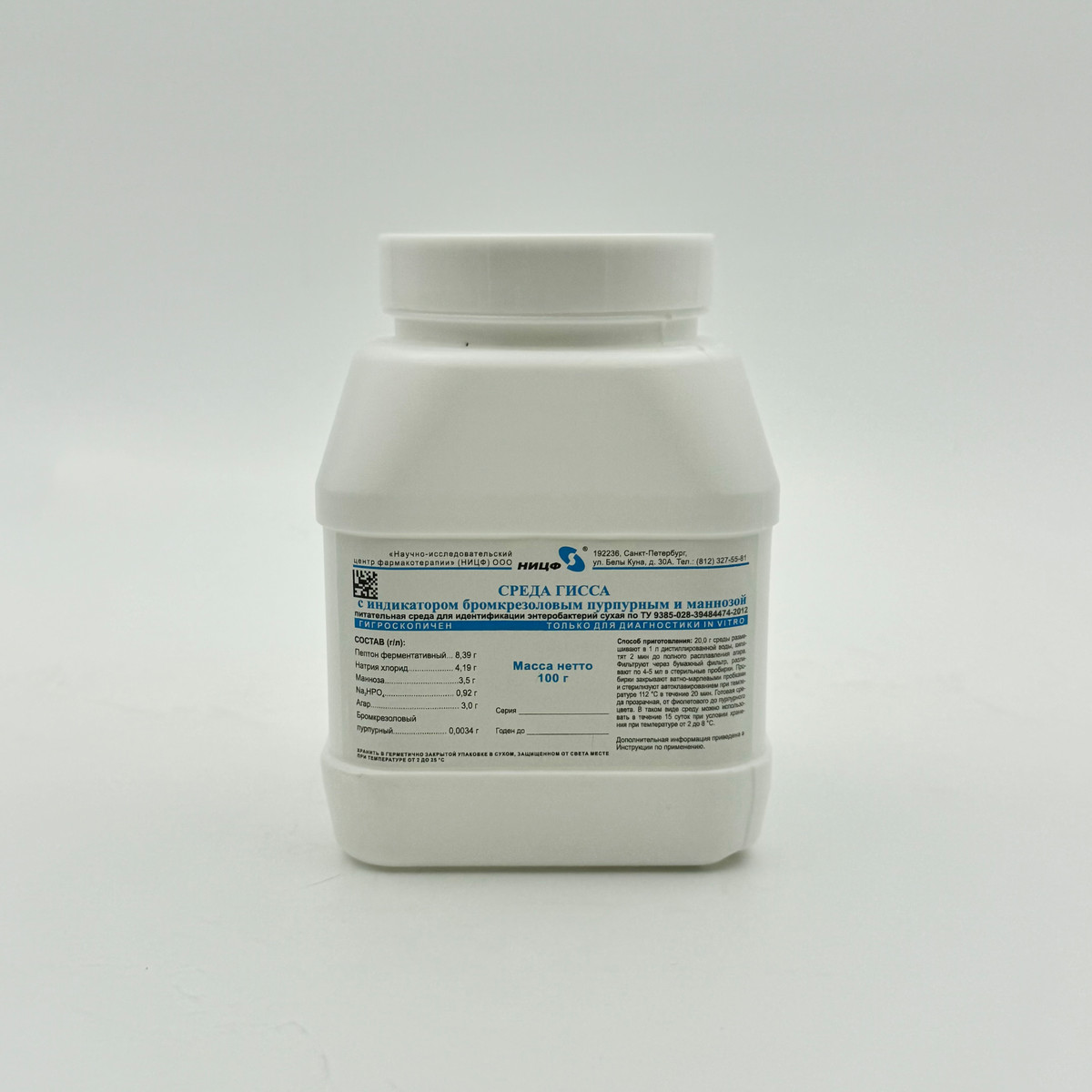 Питательная среда для идентификации энетеробактерий сухая. Среда Гисса с индикатором бромкрезоловым пурпурным и маннозой. 0,1 кг.