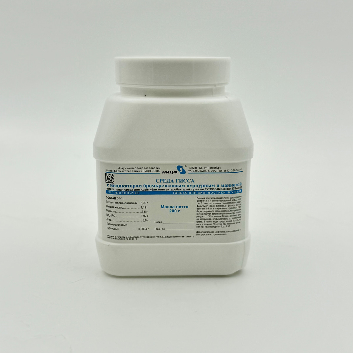 Питательная среда для идентификации энетеробактерий сухая. Среда Гисса с индикатором бромкрезоловым пурпурным и маннозой. 0,2 кг.