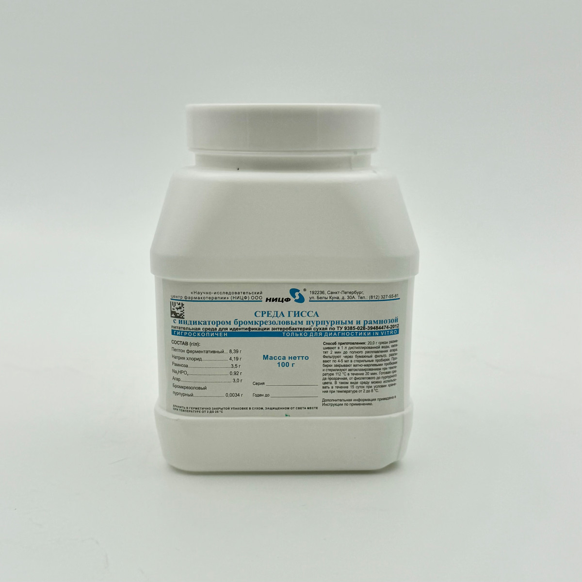 Питательная среда для идентификации энетеробактерий сухая. Среда Гисса с индикатором бромкрезоловым пурпурным и рамнозой. 0,1 кг.