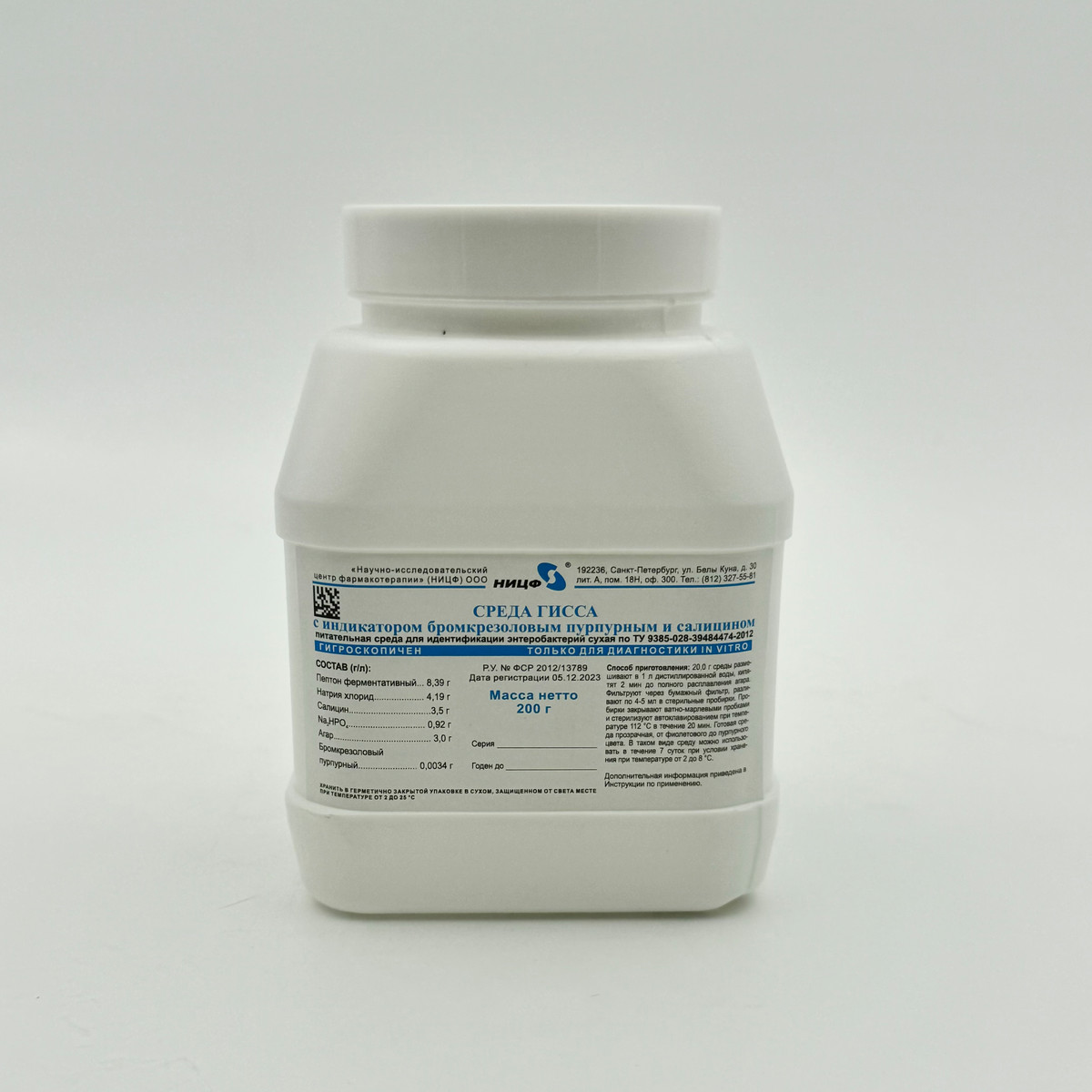 Питательная среда для идентификации энетеробактерий сухая. Среда Гисса с индикатором бромкрезоловым пурпурным и салицином. 0,2 кг
