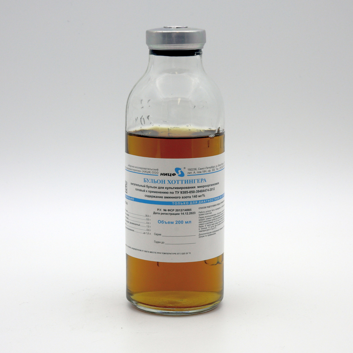 Питательный бульон для культивирования микроорганизмов. Бульон Хоттингера, содержание аминного азота 140 мг/% , готовый к применению 0,2 л.