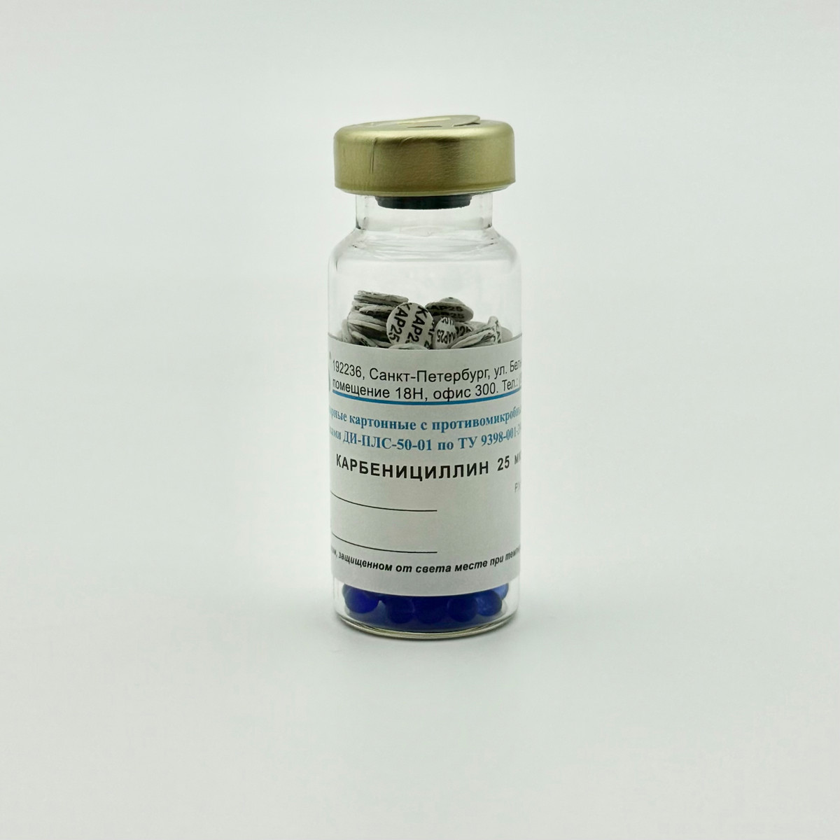 Диски индикаторные картонные с противомикробными лекарственными средствами ДИ-ПЛС-50-01 с карбенициллином 25 мкг № 100