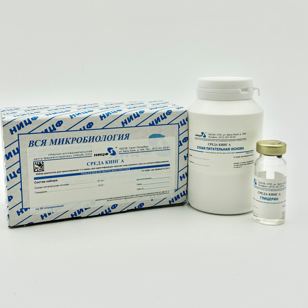 Набор для идентификации палочек сине-зеленого гноя по пигментообразованию (среда Кинг А) на 50 анализов.