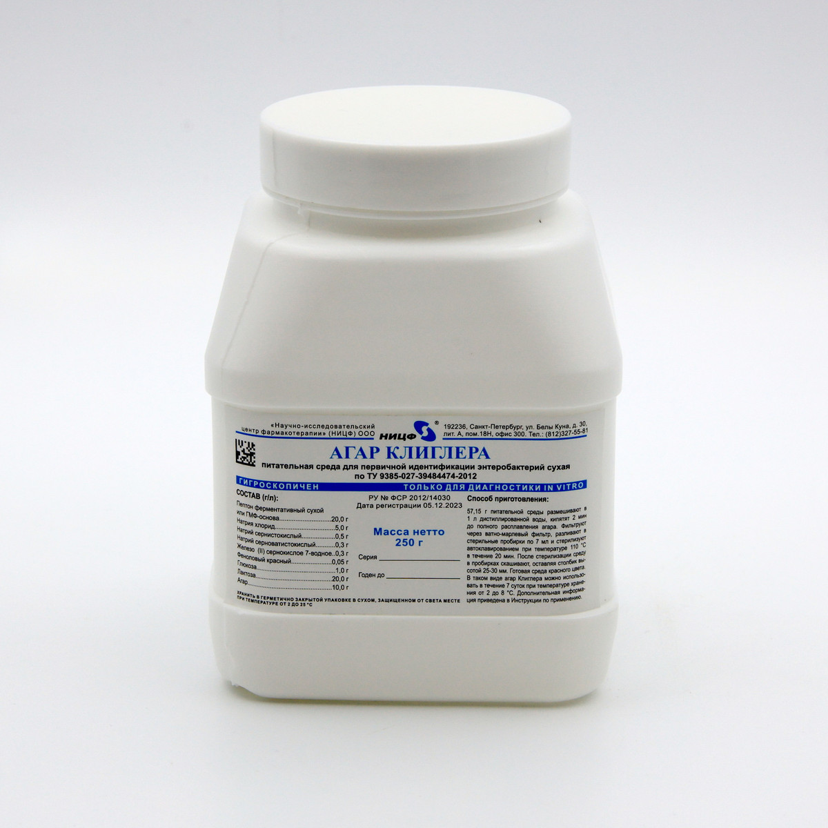 Питательная среда для первичной идентификации энтеробактерий сухая, агар Клиглера предназначена для первичной идентификации культур энтеробактерий, выделенных из клинического материала и объектов окружающей среды, по способности ферментировать лактозу, глюкозу и образовывать сероводород.