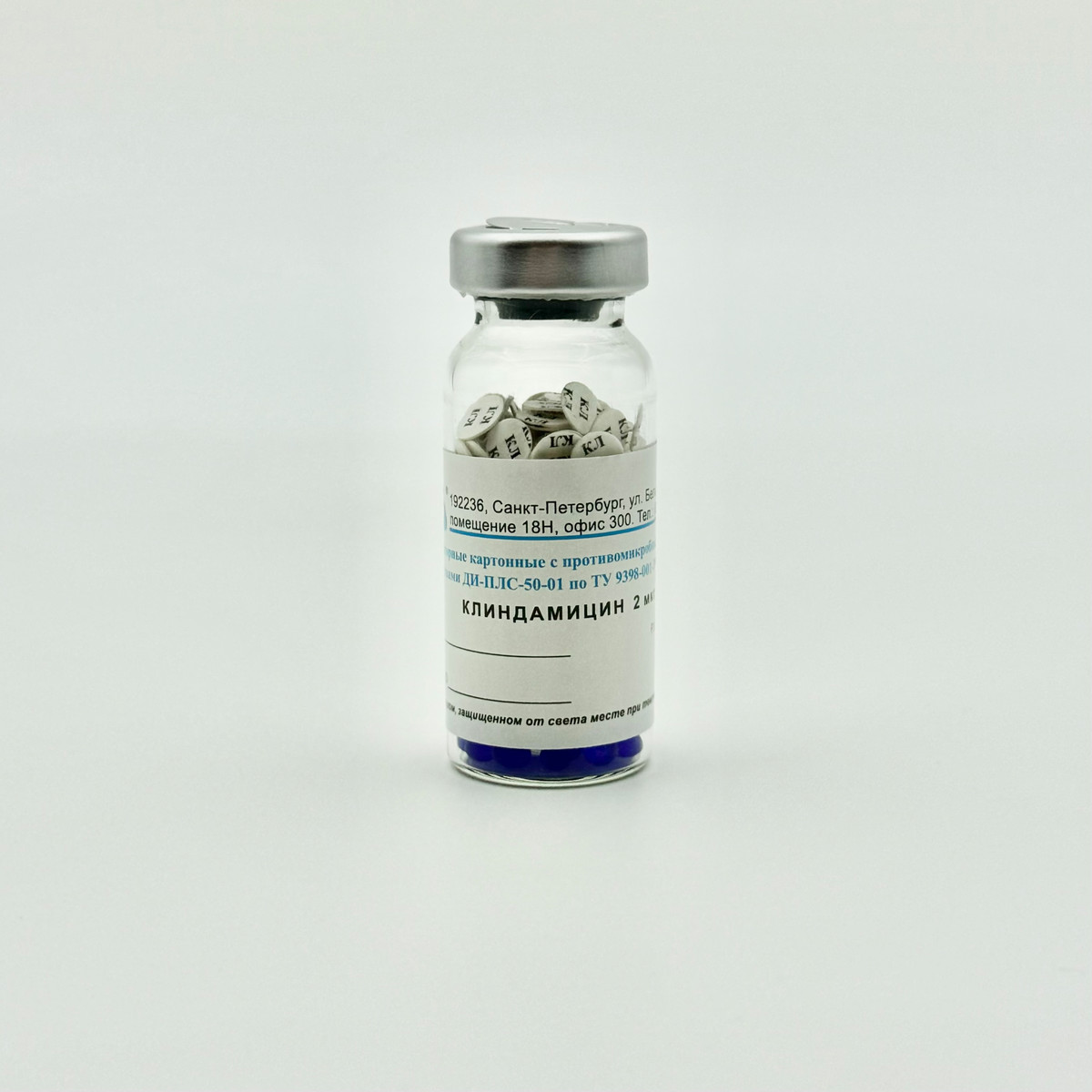 Диски индикаторные картонные с противомикробными лекарственными средствами ДИ-ПЛС-50-01 с клиндамицином 2 мкг № 100