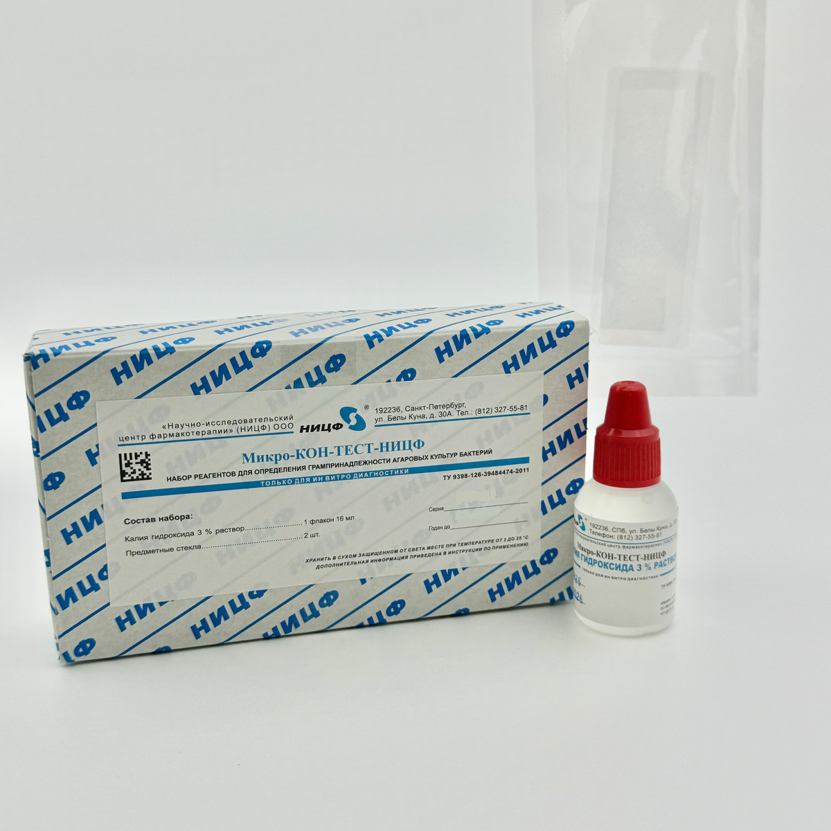 Микро-КОН-ТЕСТ-НИЦФ. Набор реагентов для определения грампринадлежности агаровых культур бактерий на 100 анализов.