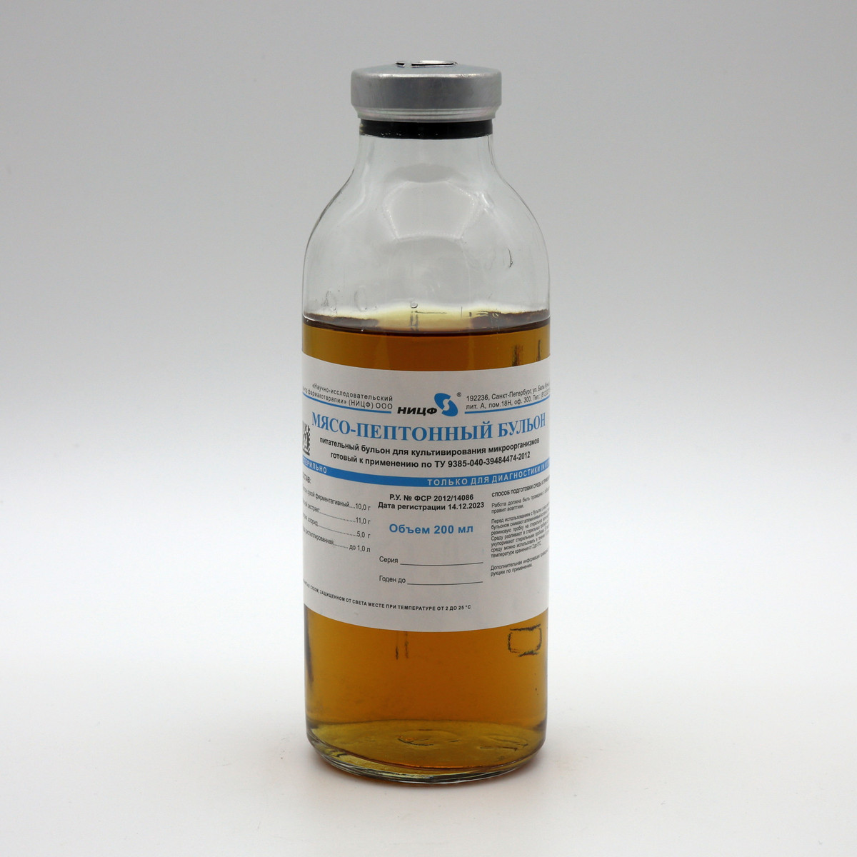 Питательный бульон для культивирования микроорганизмов готовый к применению. Мясо-пептонный бульон, 200 мл.