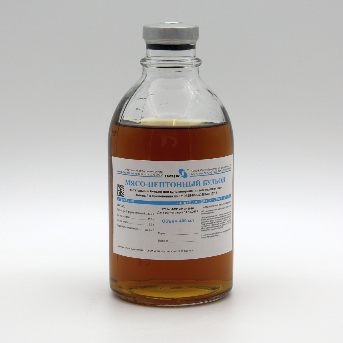 Питательный бульон для культивирования микроорганизмов готовый к применению. Мясо-пептонный бульон, 400 мл.