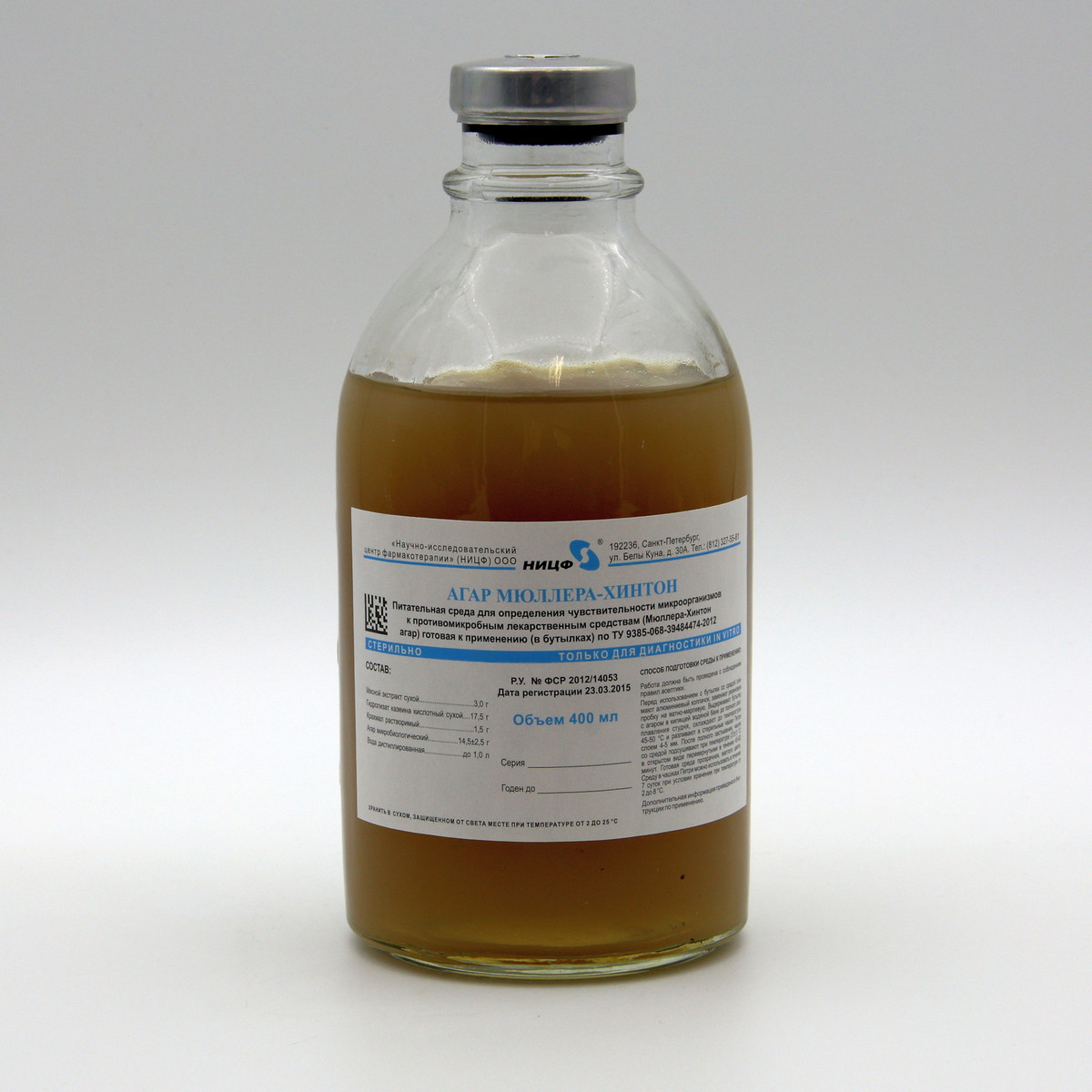 Питательная среда для определения чувствительности микроорганизмов к противомикробным лекарственным средствам, готовая к применению. Мюллера-Хинтон агар 400 мл.