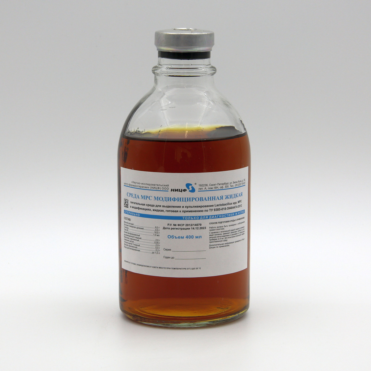 Питательная среда для выделения и культивирования Lactobacillus spp. МРС модифицированная, жидкая, готовая к применению, 400 мл.