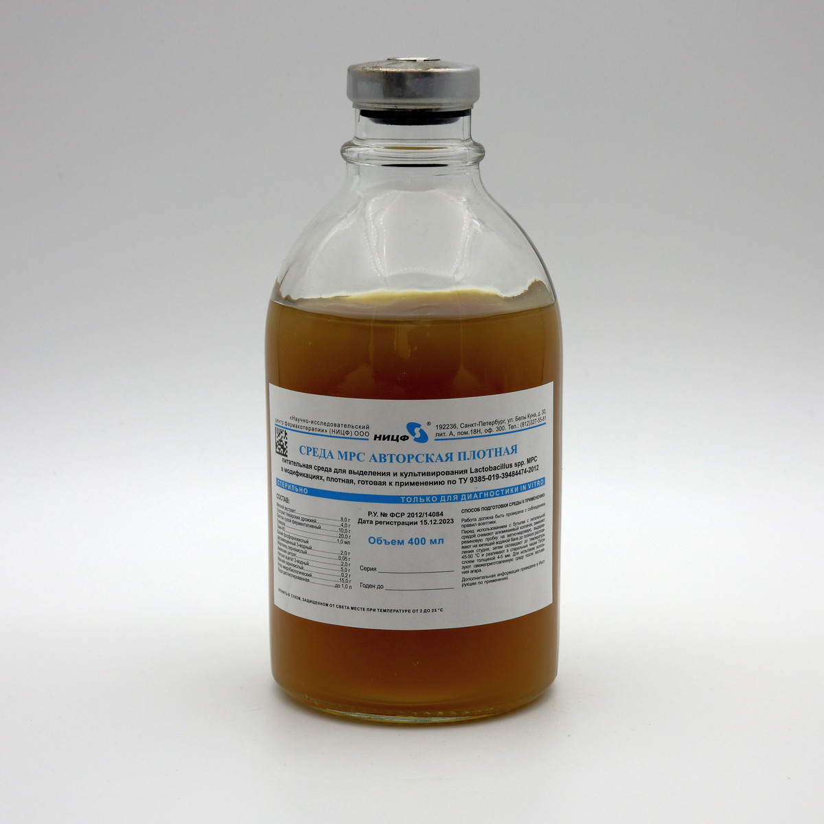 Питательная среда для выделения и культивирования Lactobacillus spp. МРС авторская, плотная, готовая к применению, 400 мл.