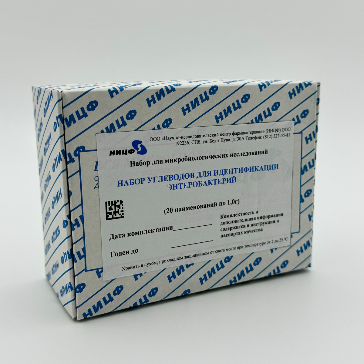 Набор сахаров для идентификации энтеробактерий по 1 г. 20 наименований: адонит, арабиноза, арабитол, глюкоза, дульцит, инозит, ксилоза, лактоза, малонат, мальтоза, маннит, меллибиоза, рамноза, раффиноза, салицин, сахароза, сорбит, трегалоза, целлобиоза, эскулин.