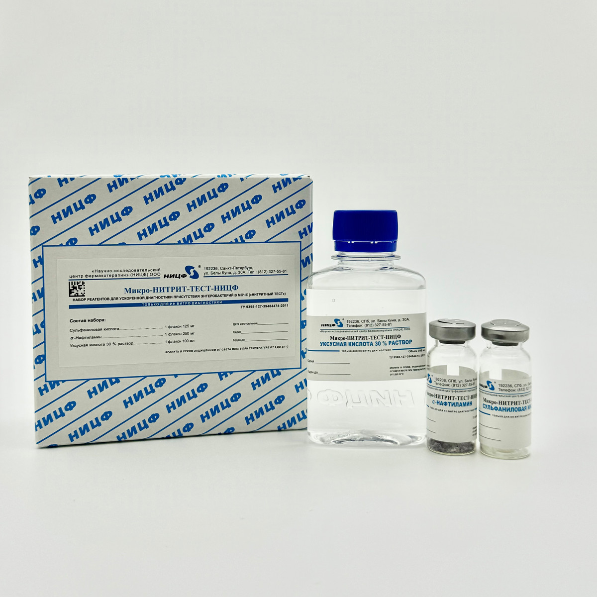 Микро-НИТРИТ-ТЕСТ-НИЦФ. Набор реагентов для ускоренной диагностики присутствия энтеробактерий в моче ("нитритный тест") на 100 анализов.