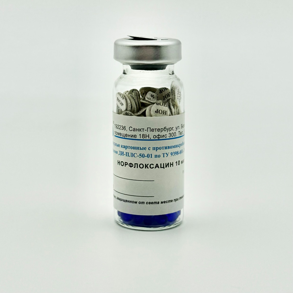Диски индикаторные картонные с противомикробными лекарственными средствами ДИ-ПЛС-50-01 с норфлоксацином 10 мкг № 100