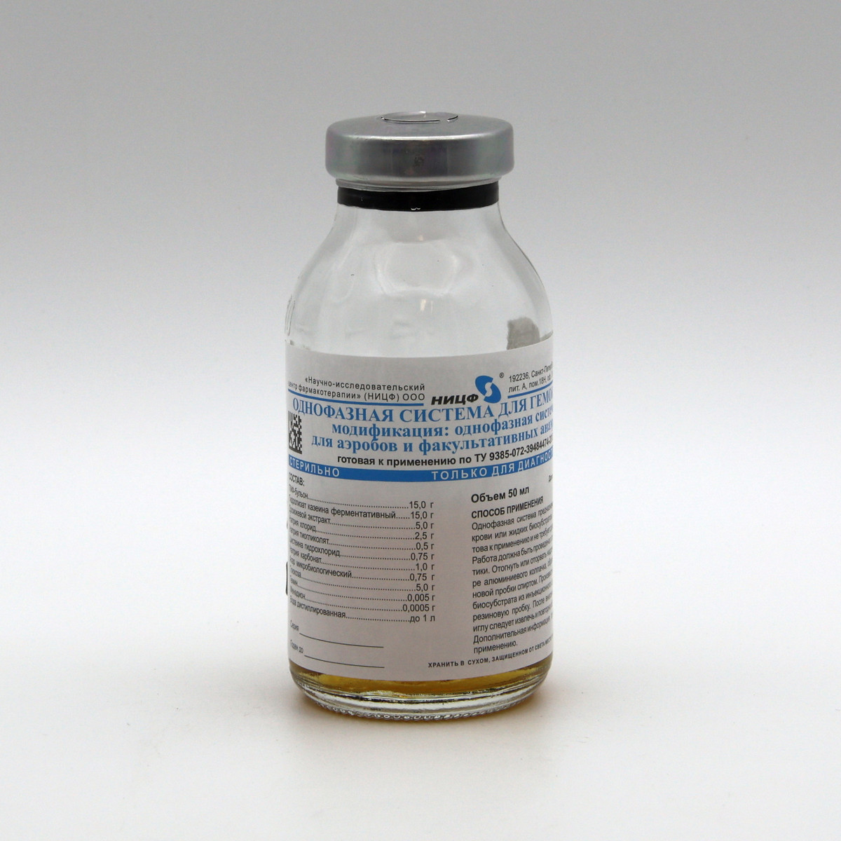 Однофазная система для гемокультур, готовая к применению. Для аэробных и факультативно анаэробных микроорганизмов, 50 мл.