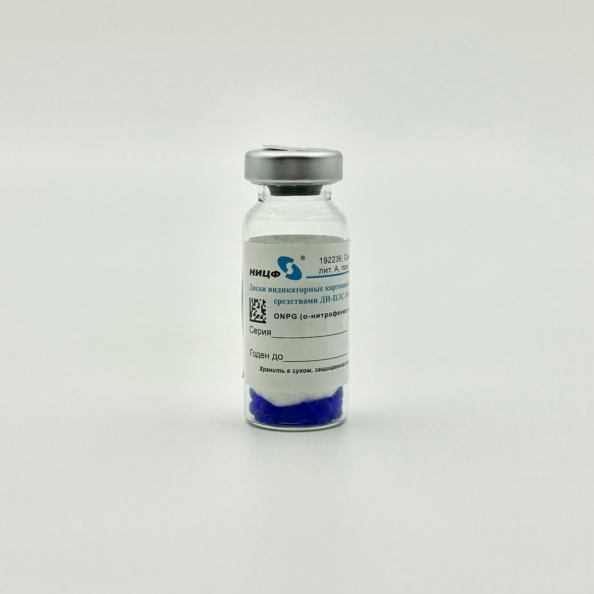 Диски индикаторные картонные с противомикробными лекарственными средствами ДИ-ПЛС-50-01с ONPG (о-нитрофенил-бета-D-галактопиранозидом) 150 мкг № 50.