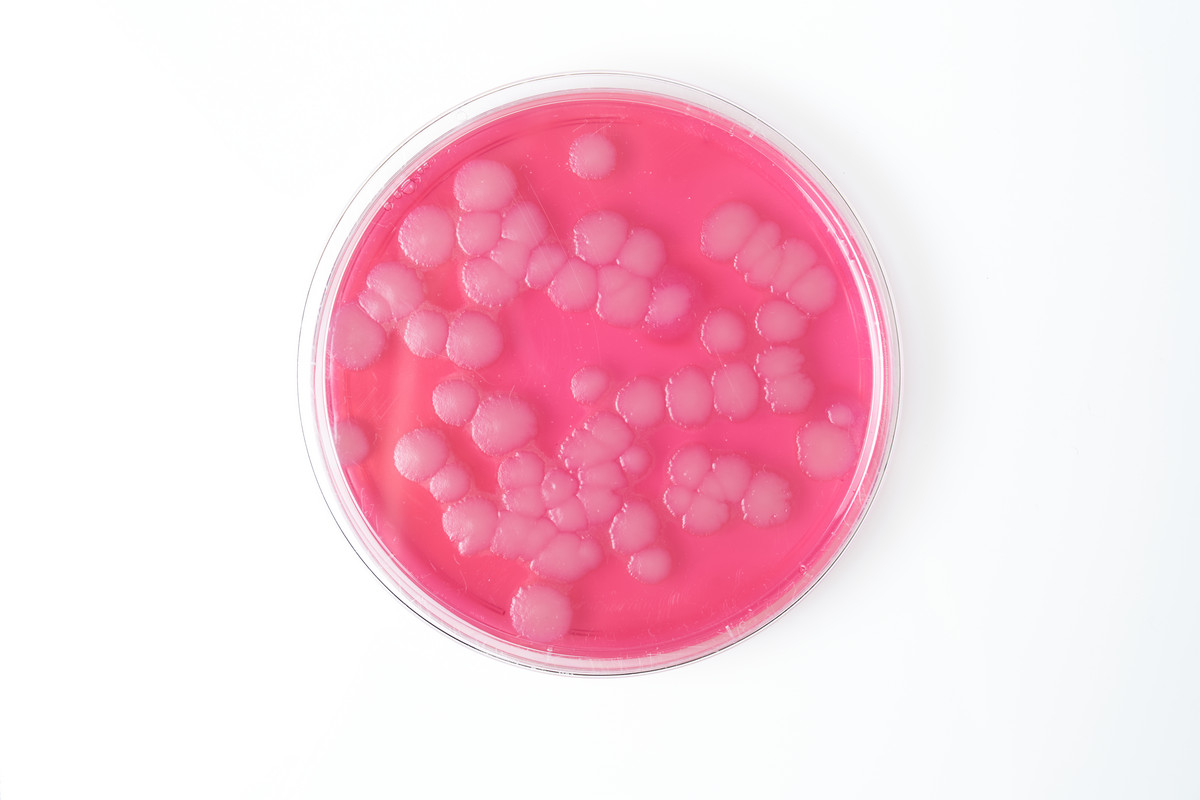 Типичные колонии Bacillus cereus на MYP-агаре имеют диаметр около 5 мм, окрашены в ярко-розовый цвет и окружены зоной преципитации.