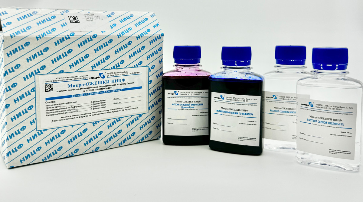 Комплект реагентов Микро-ОЖЕШКИ-НИЦФ предназначен для дифференциально-диагностической окраски микроорганизмов путем последовательной обработки мазков реагентами комплекта.