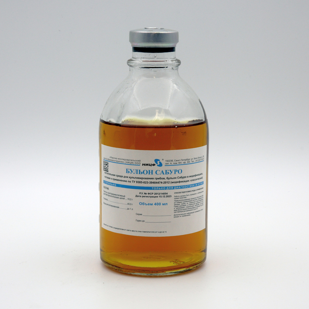 Питательная среда для культивирования грибов, бульон Сабуро классический, готовый к применению, 400 мл.